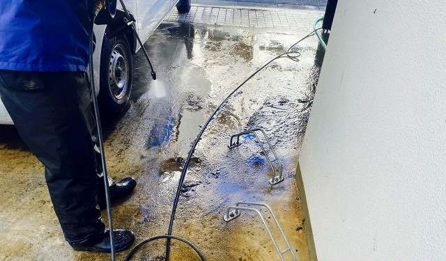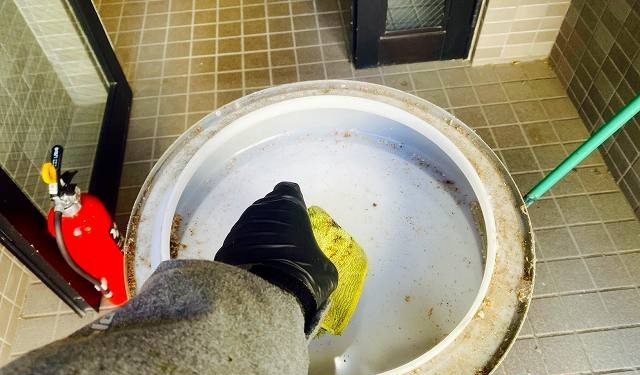 これまで清掃が入っていなかったようで床面が汚れで真っ黒な状態